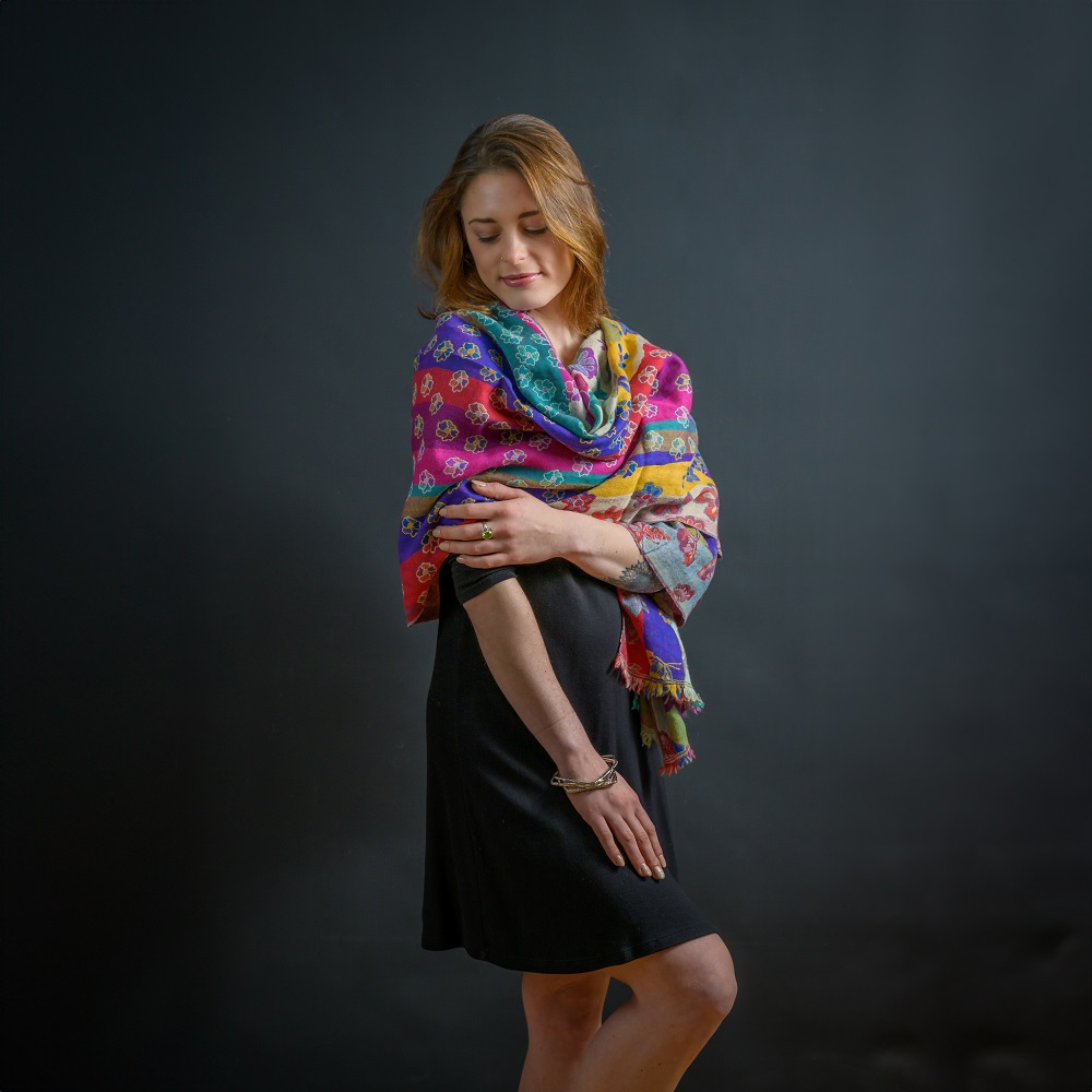 Care: Their luxurious yet enduring merino wool ensures that these shawls are a treasure to keep for many years; to keep them fresh, we recommend dry-clean or cool hand-washing only.